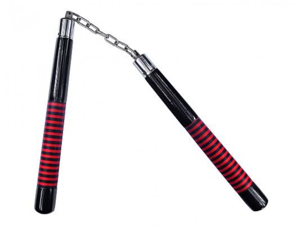 Špeciálne prevedenie nunčaku s čiernými drevenými rúčkami, ktoré sú prepojené kovovou raťazou. Drevený podklad je v čiernej farbe, na ktorom je čierno-červená omotávka. Ukončenie nunčaku je zaoblené pre lepšiu a plynulejšiu manipuláciu a zaobchádzanie.