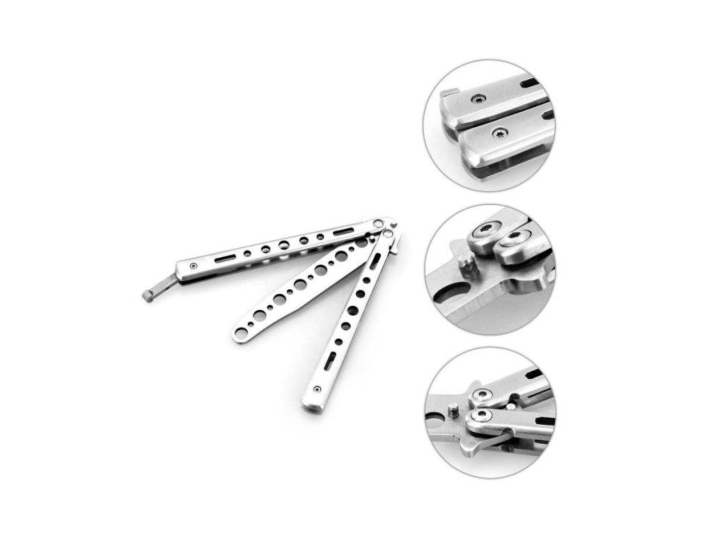 Na rukoväti chýba klasická spona na opasok, čím sa zlepšuje komfort trikovania – hladké rukoväte znižujú riziko zachytenia pri flipovaní. Tento tréningový motýlik je ideálny ako vstupný nástroj pre začiatočníkov i ako parádny kúsok pre pokročilých nadšencov, ktorí chcú zdokonaliť svoje techniky.
