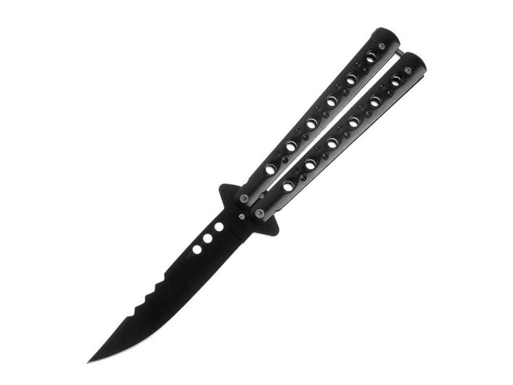 Motýlikový nôž Benchmade Ultra Sonic XP-22 v čiernej farbe, celková dĺžka cca 23 cm, hladká manipulácia, moderný dizajn.