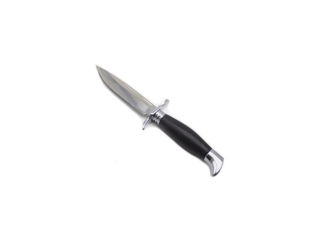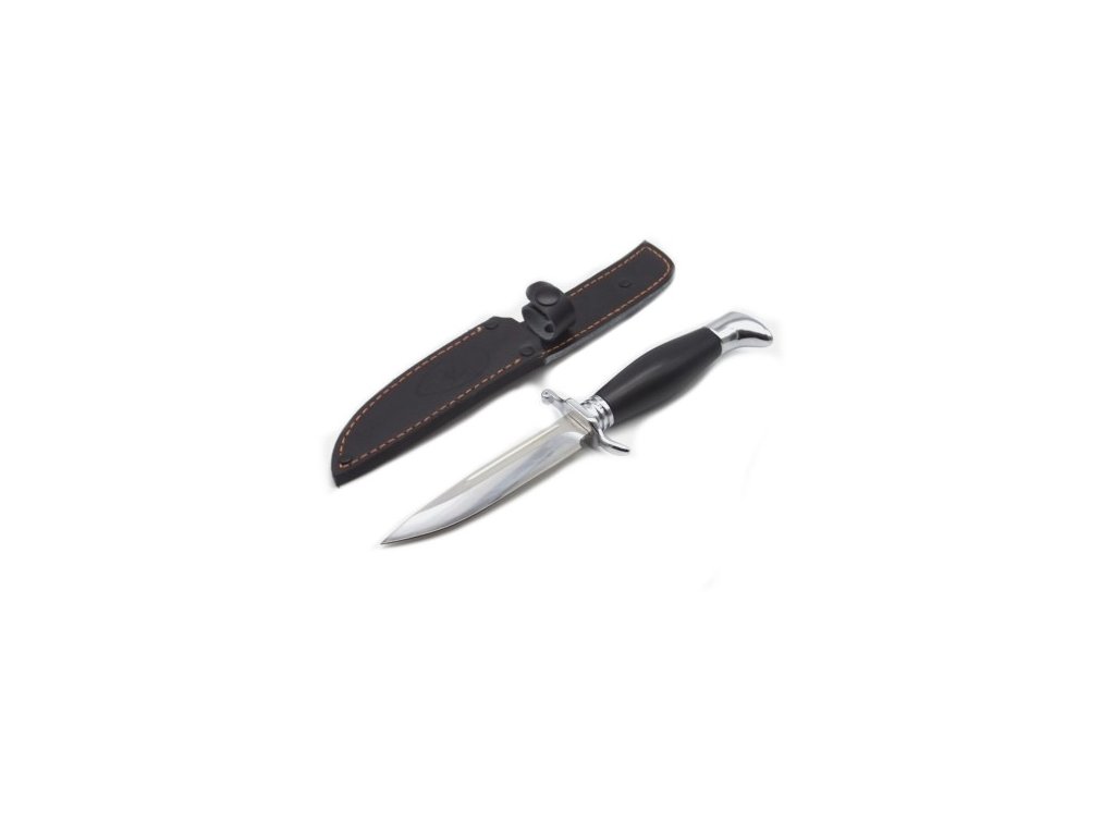 Dýka Finka „NKVD KGB“ vás prenesie do atmosféry sovietskych špeciálnych služieb — svojím dizajnom aj materiálovým prevedením. Čepeľ z nerezovej ocele má dĺžku 12 cm a celková dĺžka noža dosahuje 26 cm. Rukoväť z dreva ponúka pevný úchop, zatiaľ čo kovová hlavica je zdobená emblémom NKVD, čo podčiarkuje historický a zberateľský charakter noža. Produkt obsahuje kvalitné kožené púzdro so sponou na opasok pre pohodlné a bezpečné nosenie.