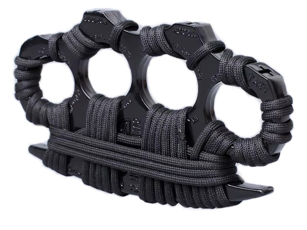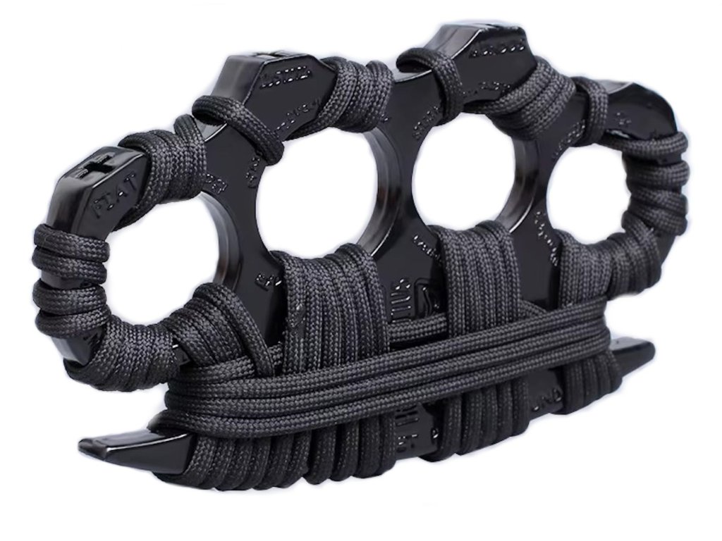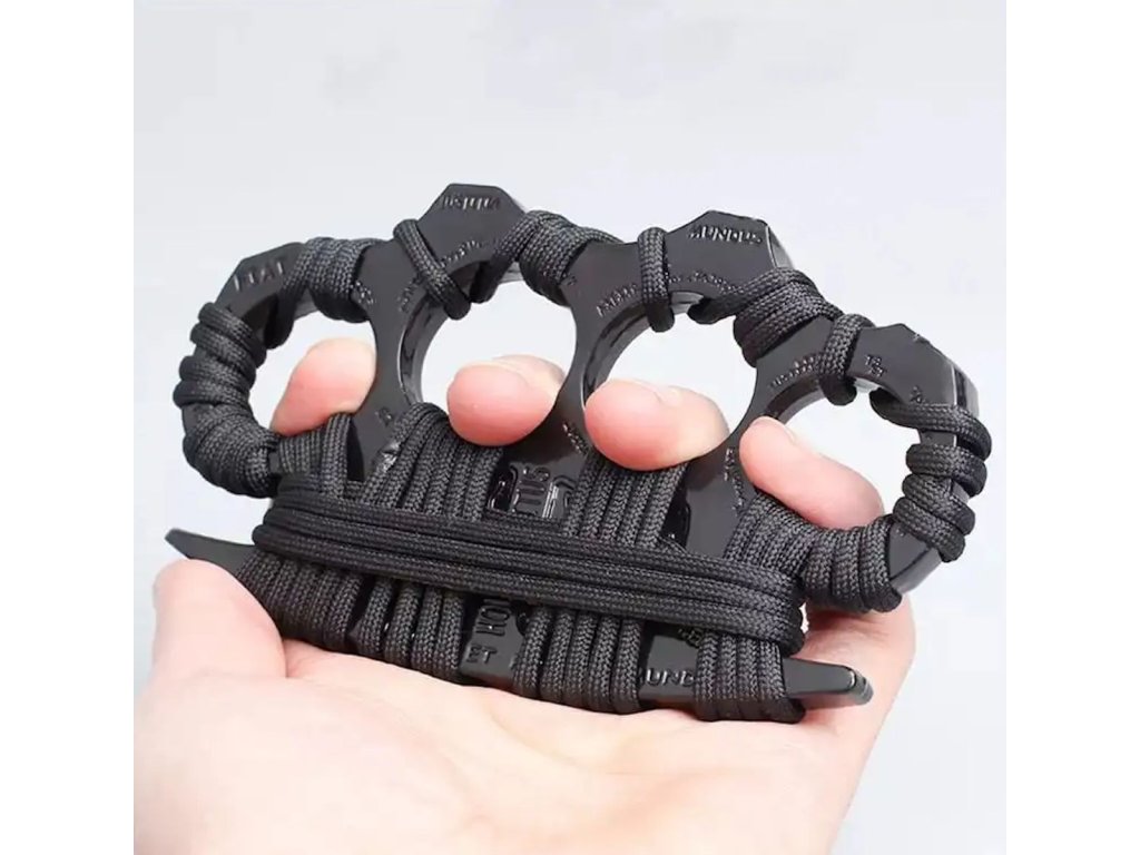 FOX Boxer „Cross Cord“ – čierny kovový boxer s paracord rukoväťou (128×72×17 mm, 245 g).