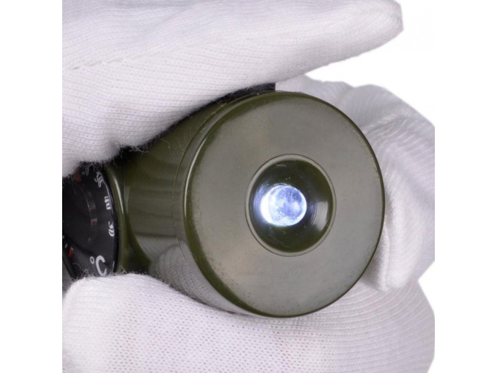 Kompas na orientáciu a teplomer pre orientačné meranie.