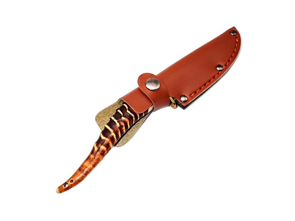 Dýka je dodávaná s koženkovým púzdrom s uchytením na opasok, takže ju máte pohodlne pripravenú na použitie alebo elegantne zaradenú do výbavy či zbierky. Výrazný motív parožia, kvalitné materiály a dôraz na detaily robia z tohto modelu skvelú voľbu pre poľovníkov, outdoorových nadšencov alebo zberateľov, ktorí hľadajú spoľahlivý nástroj s osobitosťou.