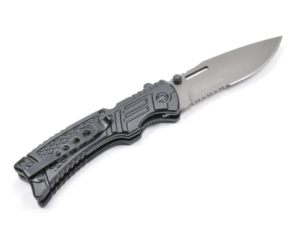 Taktický zatvárací záchranársky nôž s robustnou oceľovou čepeľou, rozbíjačom skla a rezačom pásov – ideálny pre rýchle zásahy a každodenné nosenie.