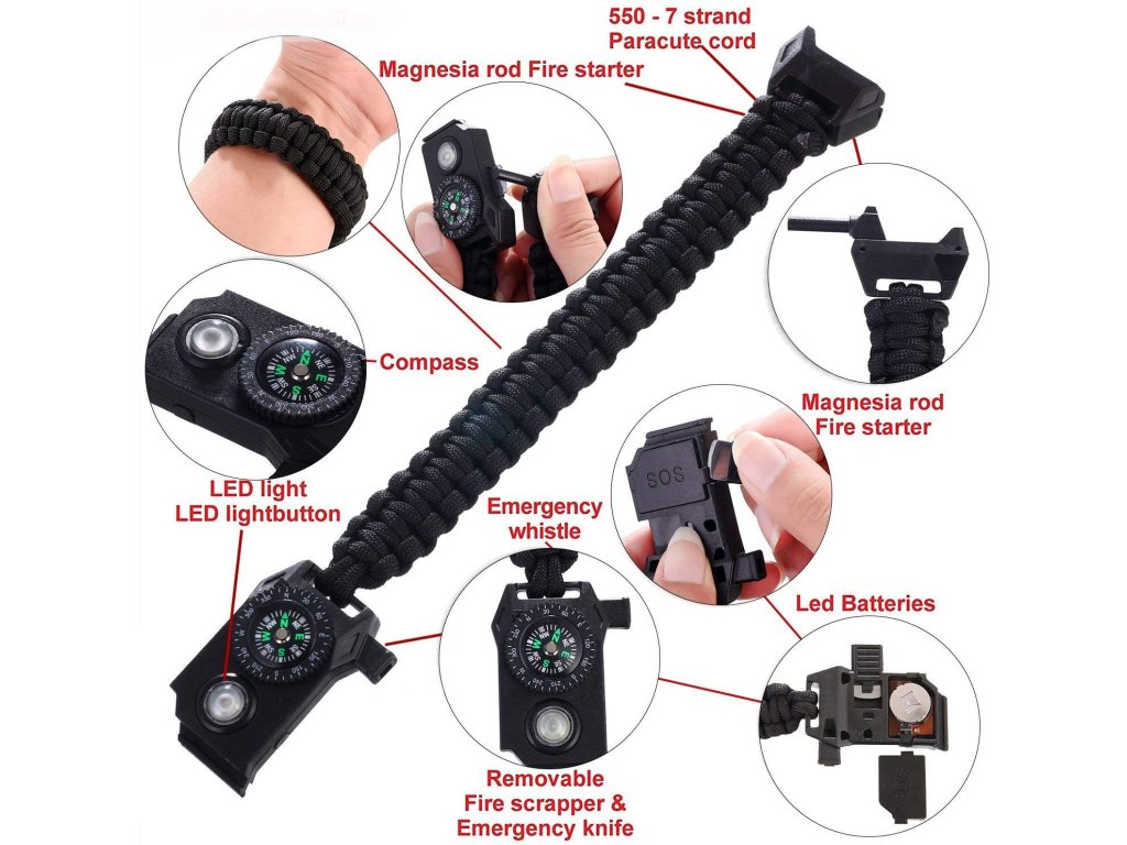 Naše ručne robené paracord náramky sa vyrábajú z parašutistickej šnúri Paracord 550, ktorá sa vyznačuje vysokou pevnosťou a všetstranným využitím. Náramok je možné rozmotať a tým získať dlhú paracord šnúru s nosnosťou až 150kg. Šnúru možno využiť napr.: