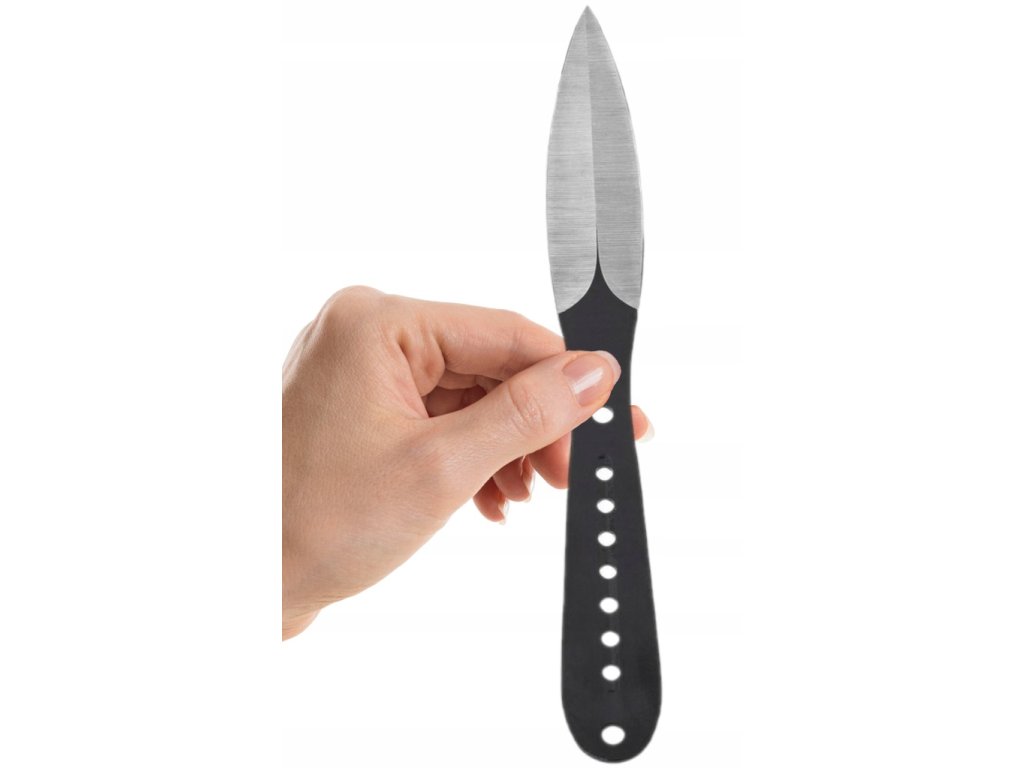 Set vrhacích nožov Point T‑23 Pro Set obsahuje tri identicky kusy vyrobené z odolnej ocele — ideálne pre tréning presnosti a techniky hádzania. Každý nôž má hladkú konštrukciu s otvorom v rukoväti pre lepšiu stabilitu pri hode. Balenie obsahuje tiež praktické nylonové púzdro s uchytením na opasok, takže nože môžete bezpečne prenášať a mať vždy po ruke. Tento set ponúka spoľahlivý výkon a priaznivú cenu — výborný pre začiatočníkov aj pokročilých používateľov, ktorí hľadajú efektívny nástroj pre zlepšovanie techník vrhania.
