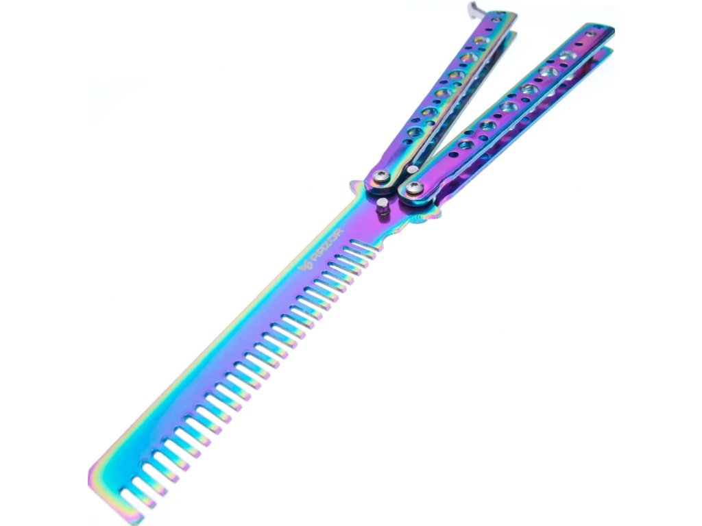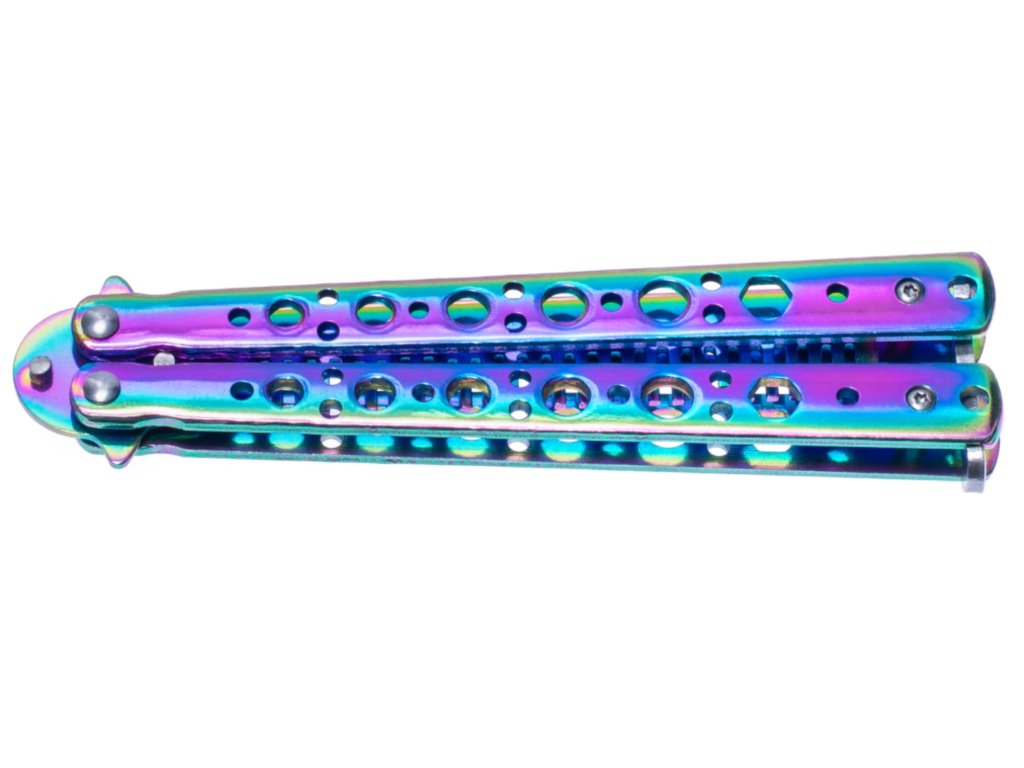 Tréningový motýlik Professional Fade – tupý nôž v dúhovej úprave