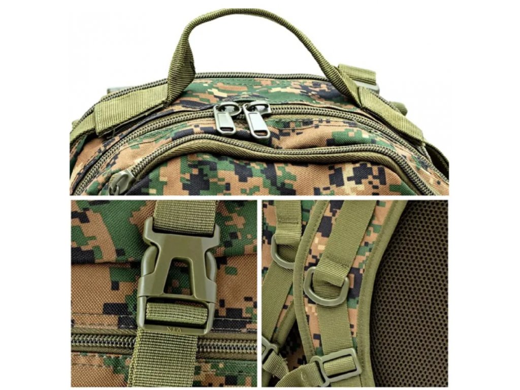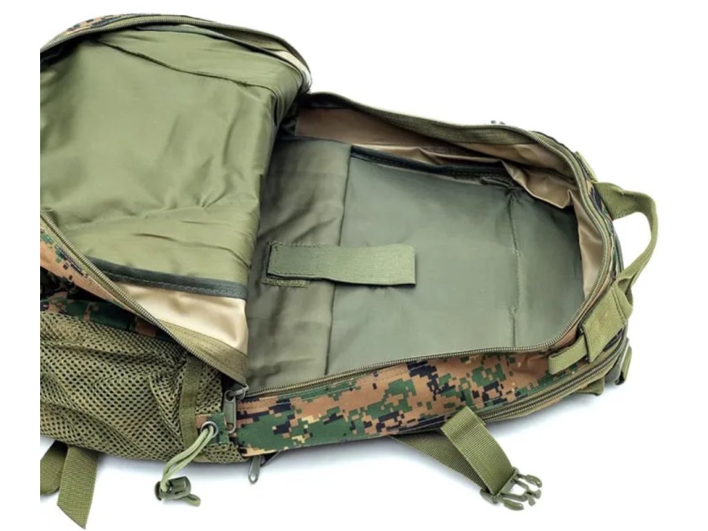 Taktický Batoh CCE Woodland je vybavený mnohými vreckami, či odkladacími priečinkami.