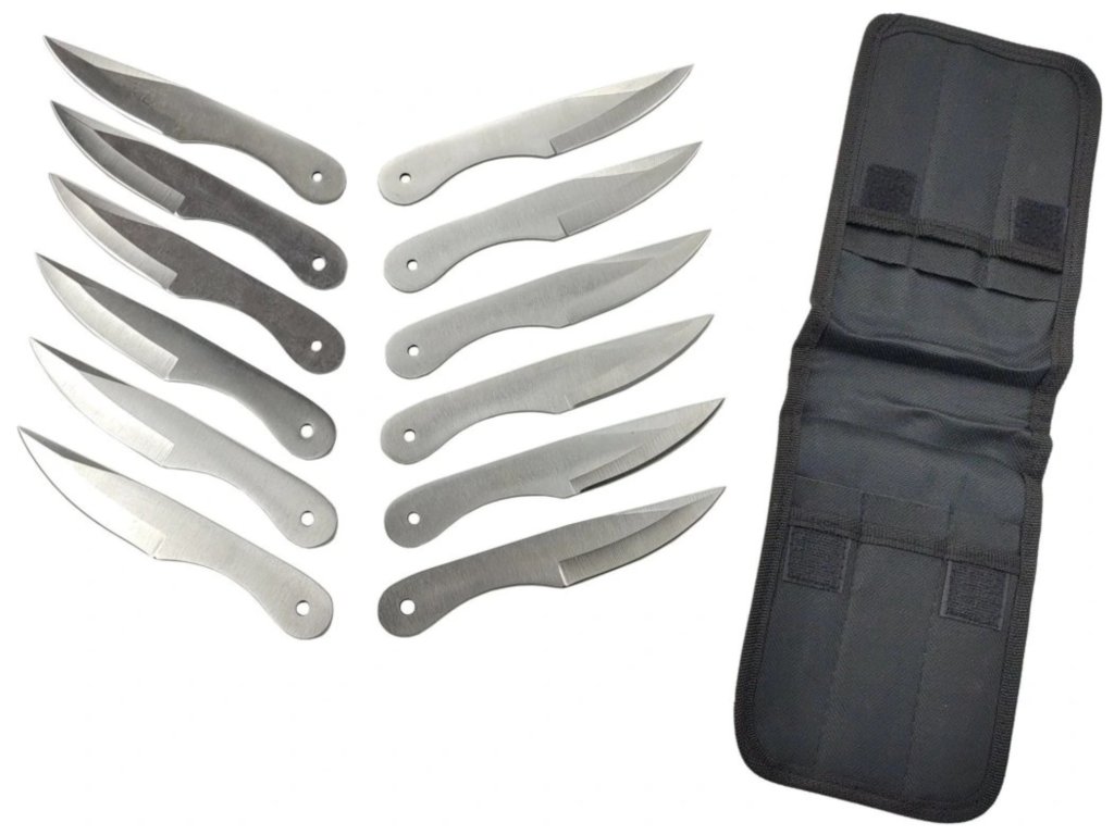 Veľká sada 12 tréningových vrhacích nožov určená na nácvik techniky hodu a dynamický tréning.
