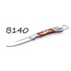 Columbia zatvárací desiatový nôž T140 - je celý kovový s elegantým dekorom dreva a dodáva sa v 3 veľkostiach. Nôž neobsahuje žiadnu skrutku ale čisto je prenitovaný a pekne vyhladený. Poistka noža je nakonci z hora a stačí ju zatlačiť napr. palcom a je typu LockBack. Poistka je veľmi pevná a používa sa len pri zatváraní noža. Elegantný kúsok ktorý si nájde vždy svoje miesto. Nôž obsahuje retiazku na zavesenie. Retiazka sa dá z noža aj odstrániť. V ponuke máme 3 veľkosti s celkovou dĺžkou od 17,5 cm do 24,5 cm.